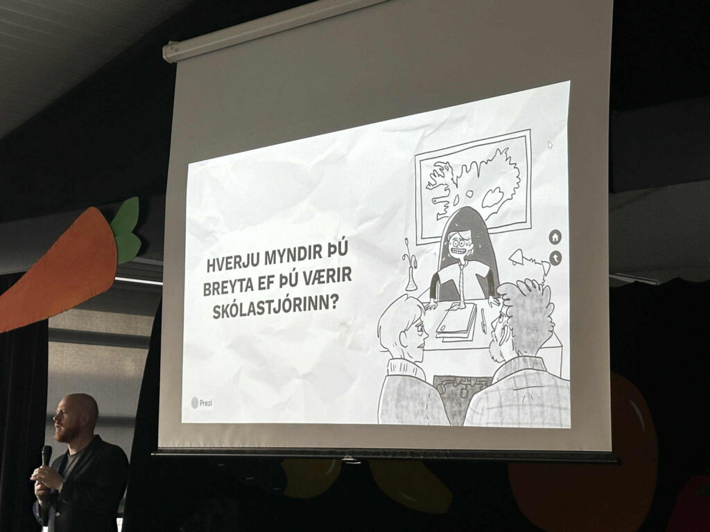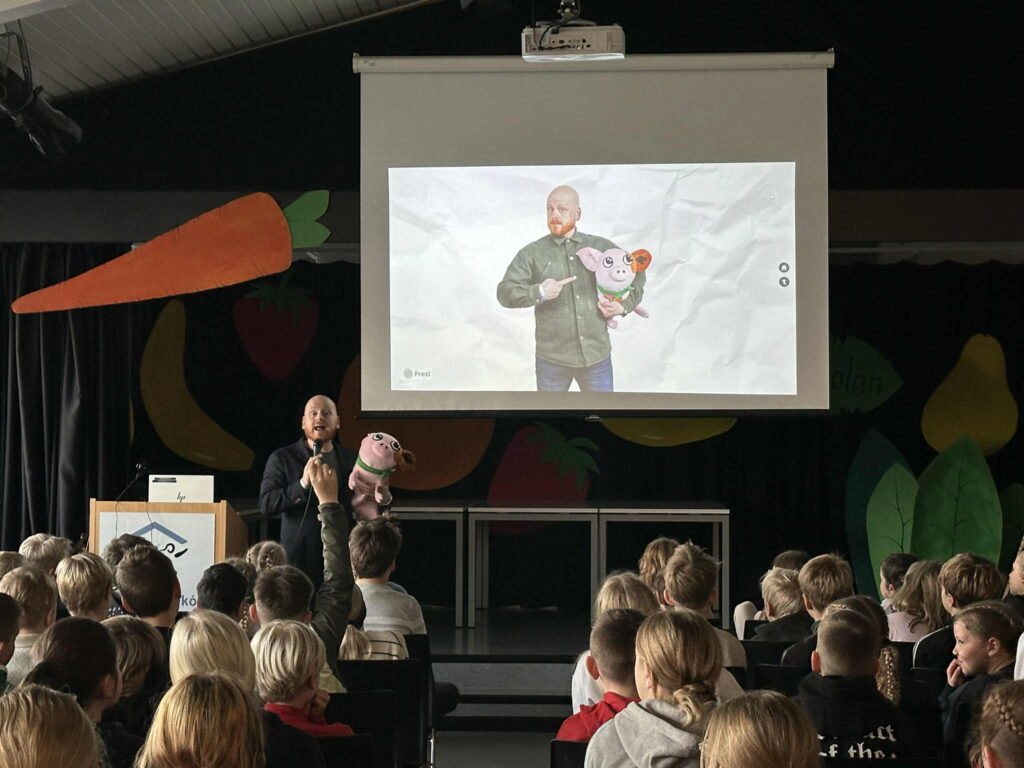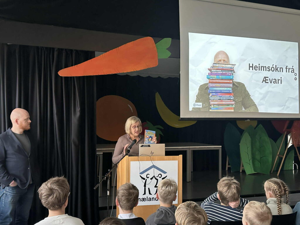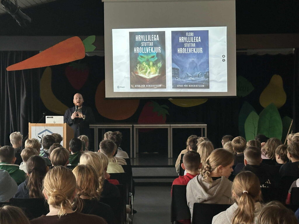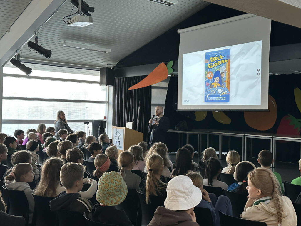 Í tilefni af degi íslenskrar tungu fékk Snælandsskóli skemmtilega heimsókn þegar rithöfundurinn Ævar Þór Benediktsson mætti og kynnti bækurnar sínar fyrir nemendum. Ævar hélt líflega kynningu og svaraði spurningum nemenda og hvatti þau til að fylgja eigin hugmyndum og sköpunargleði. Að lokum las hann upp úr nýjustu bók sinni, Skólastjórinn, sem vakti mikla kátínu og spennu í salnum. Skemmtilegar umræður sköpuðust í kjölfarið.