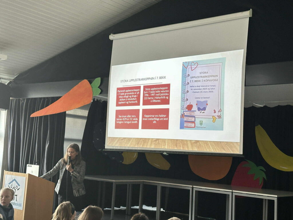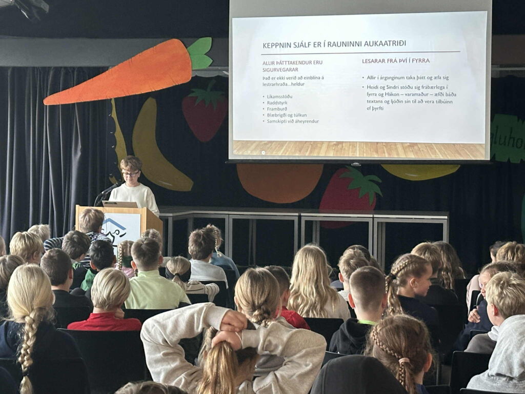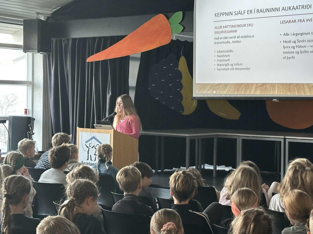 Nemendur fengu að heyra hvernig keppnin fer fram og hvers vegna upplestrarhæfileikar skipta máli í námi og daglegu lífi.