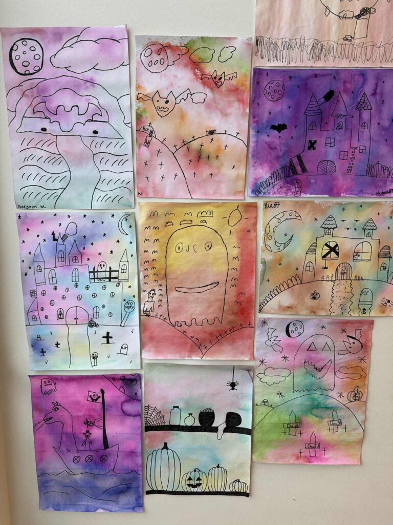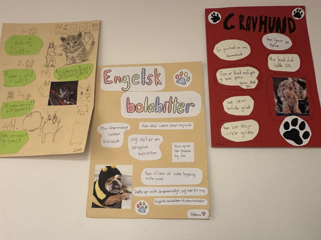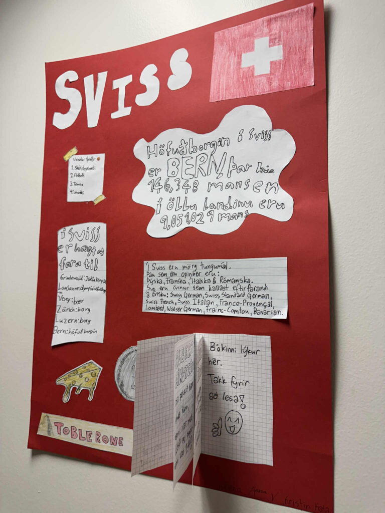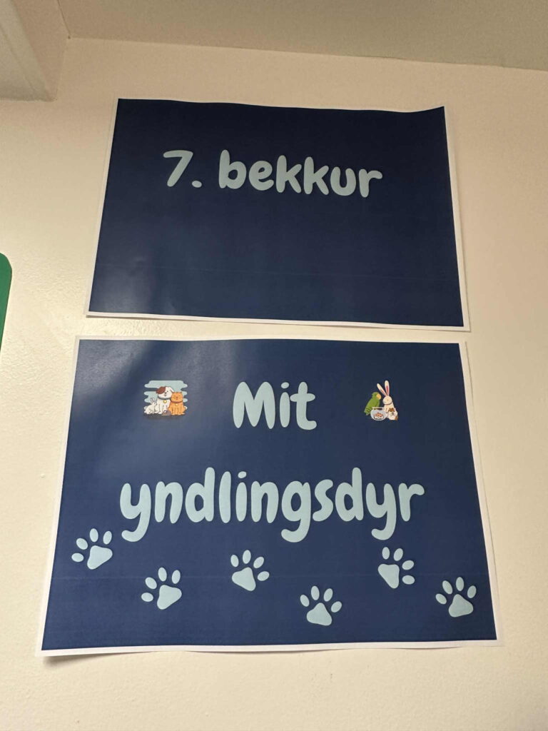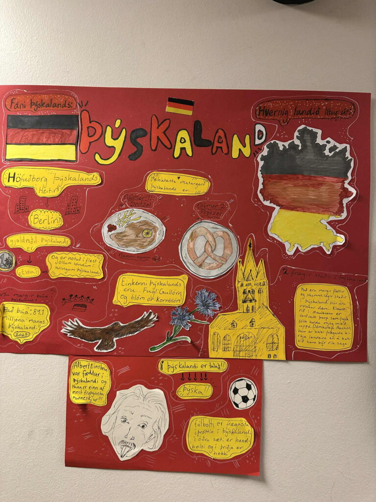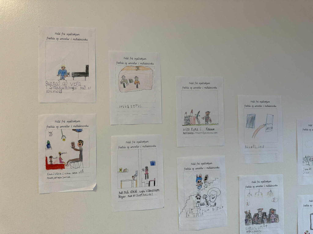 Á veggjum skólans má sjá teikningar og ýmis listaverk sem nemendur hafa búið til og upplýsingar til nemanda