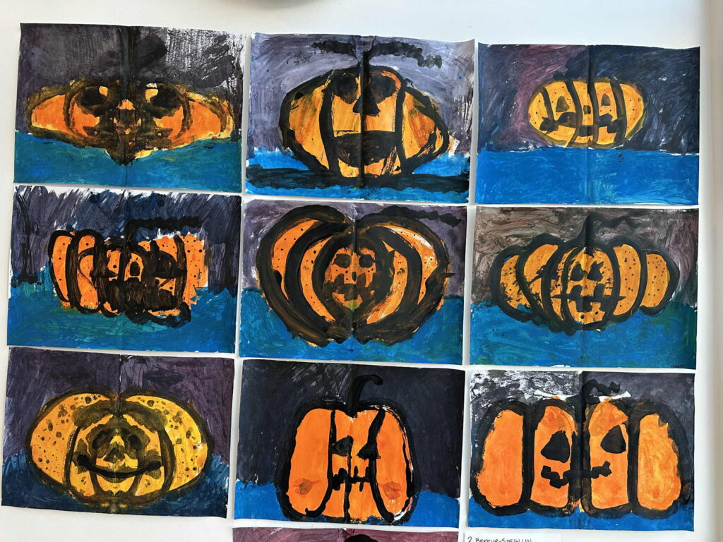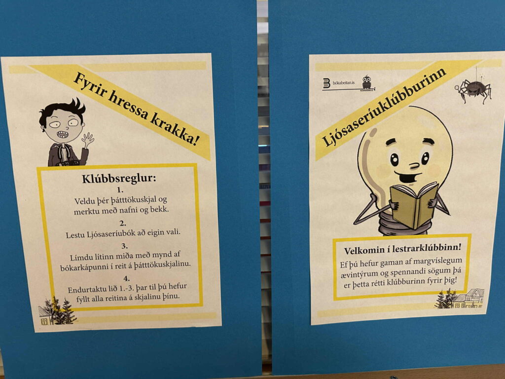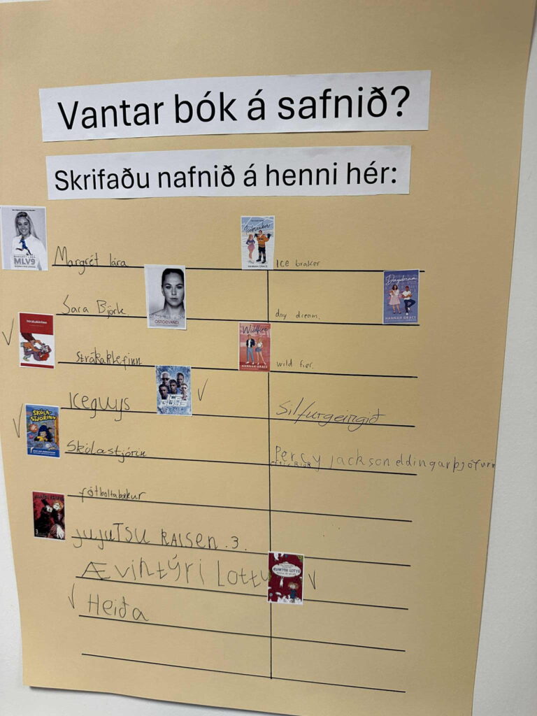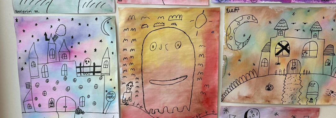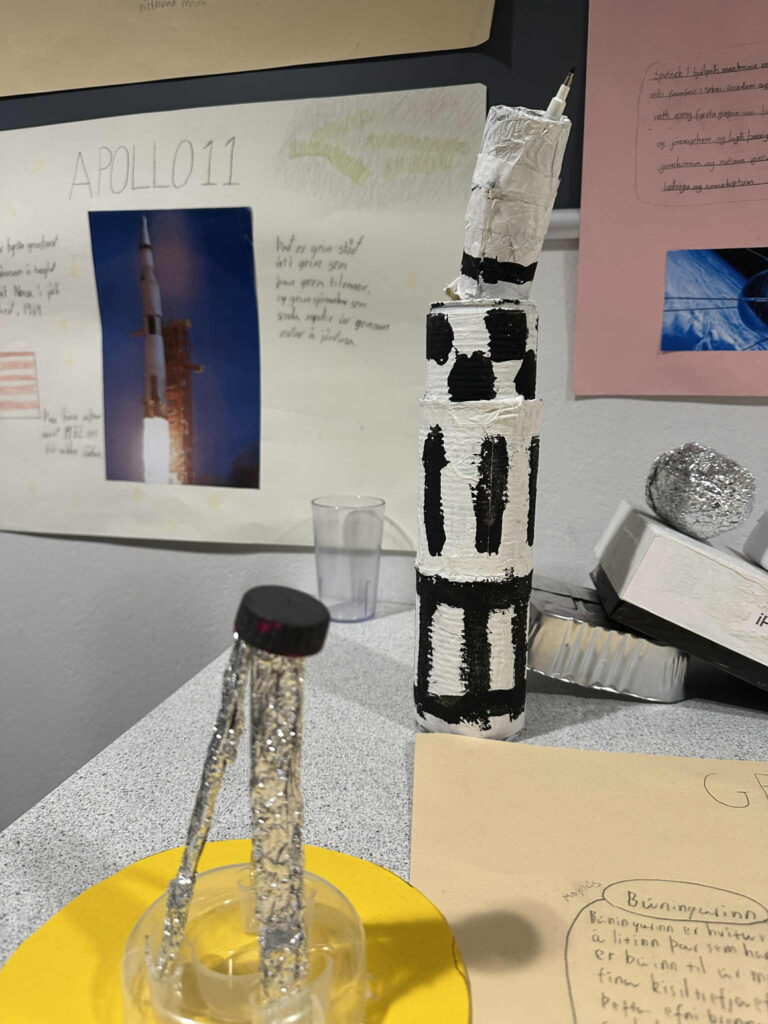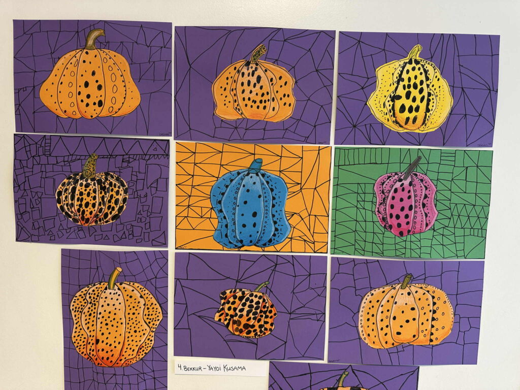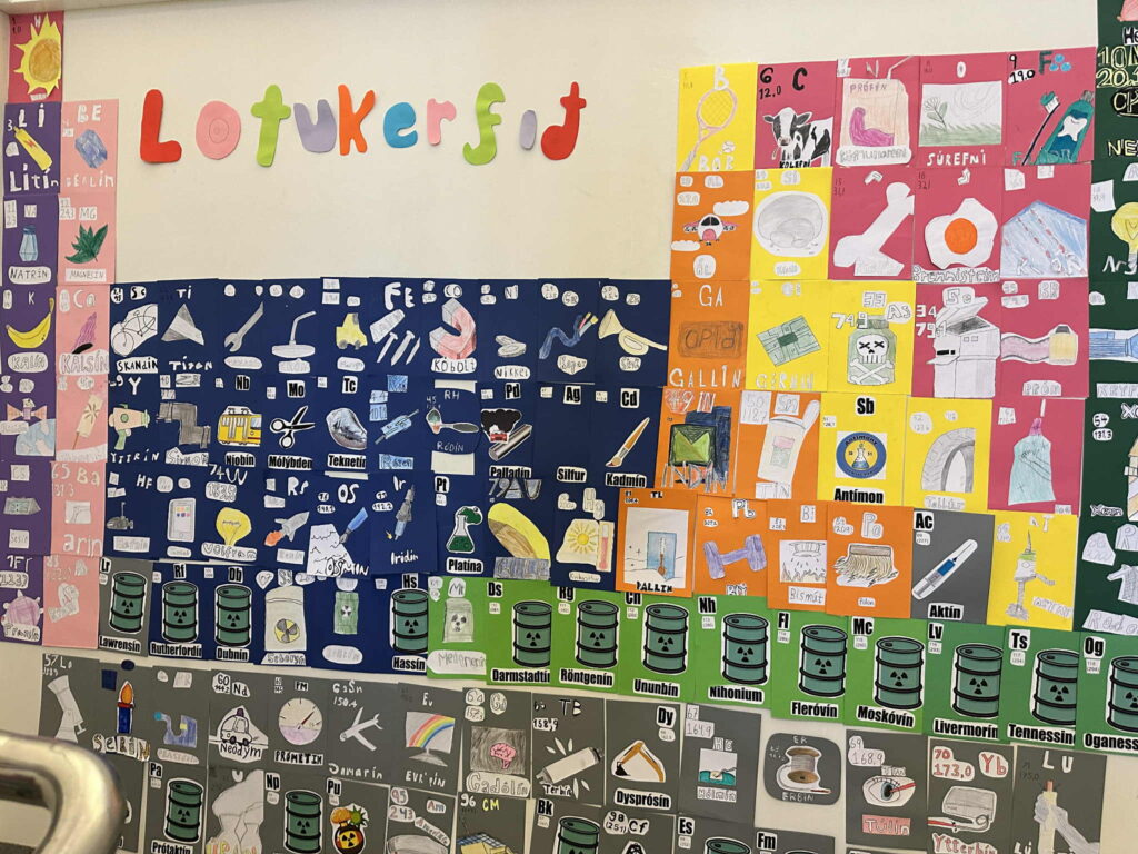 Á veggjum skólans má sjá teikningar og ýmis listaverk sem nemendur hafa búið til og upplýsingar til nemanda