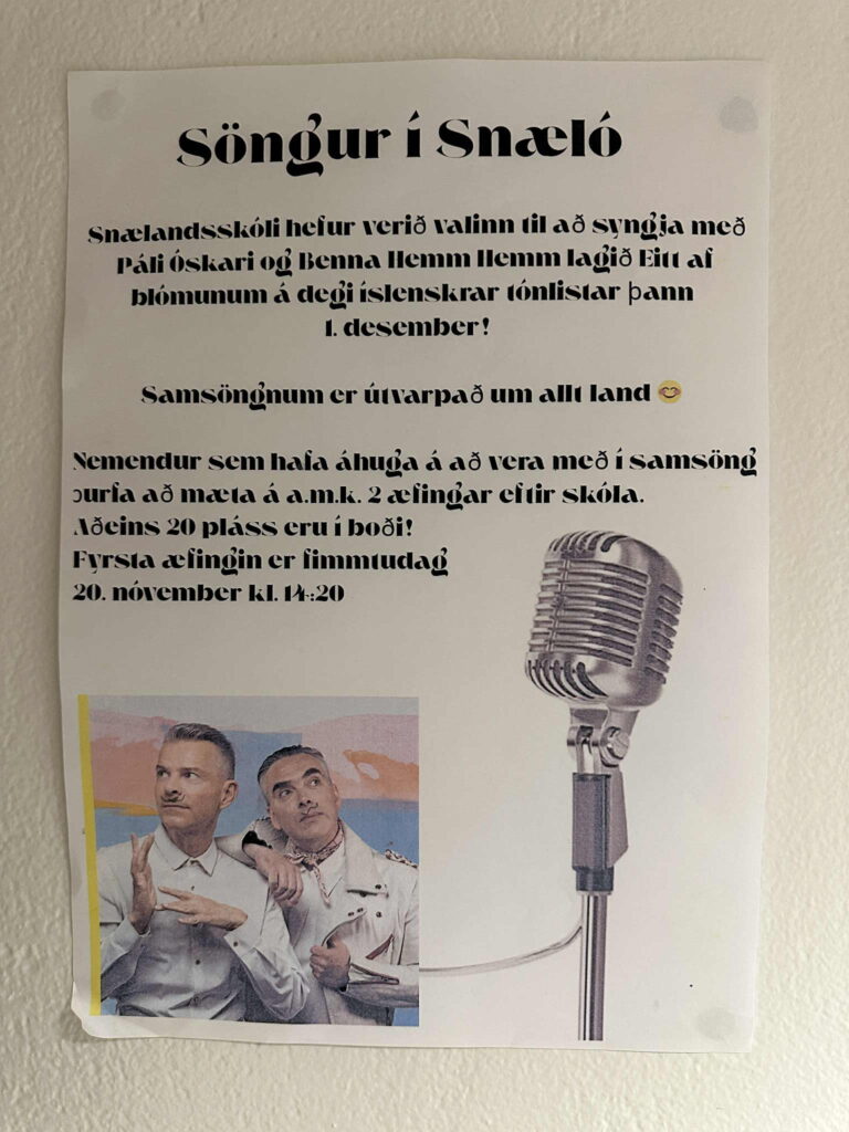 Myndir sem prýða veggi skólans og skapa lifandi námsumhverfi