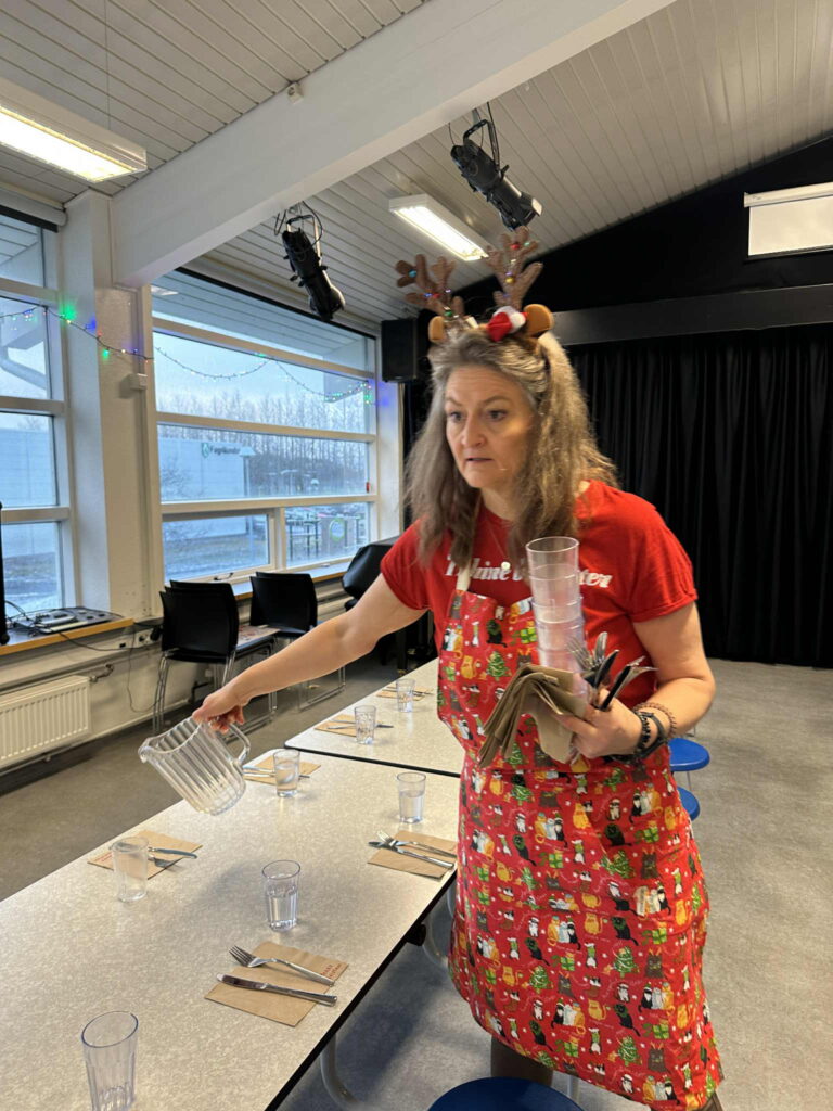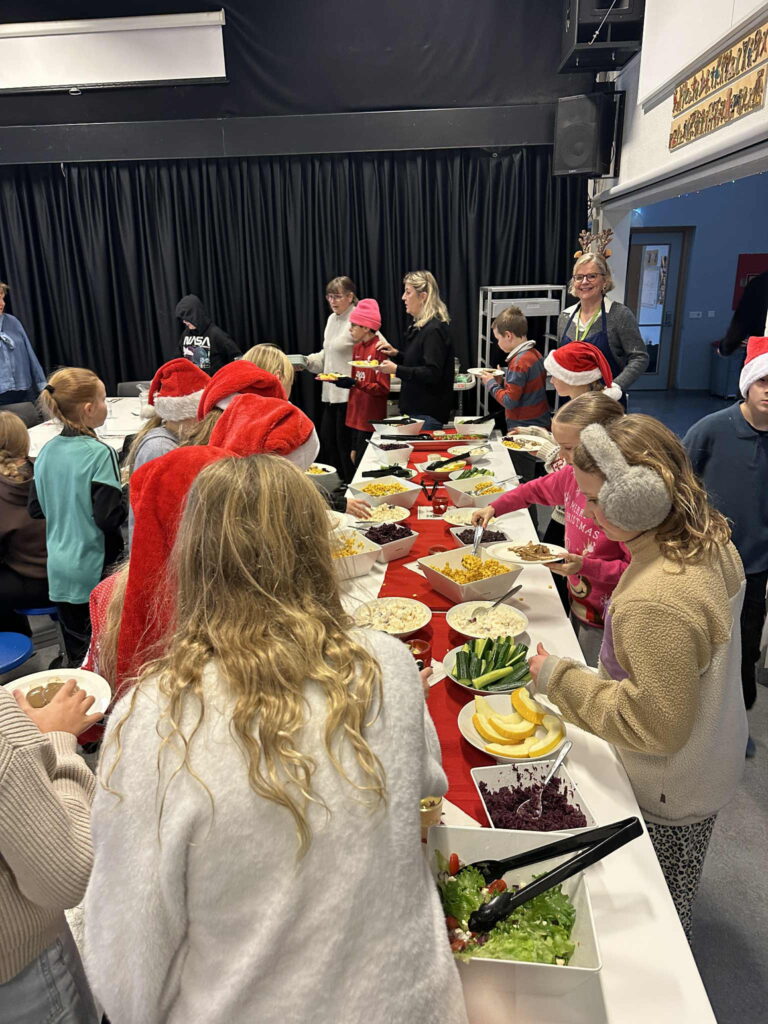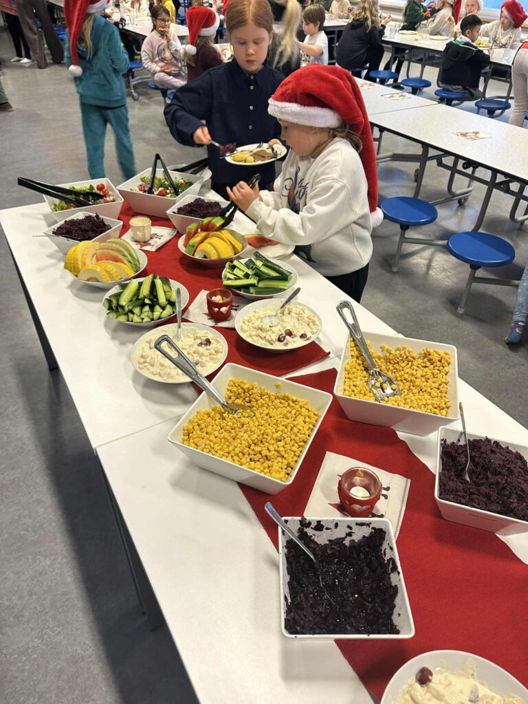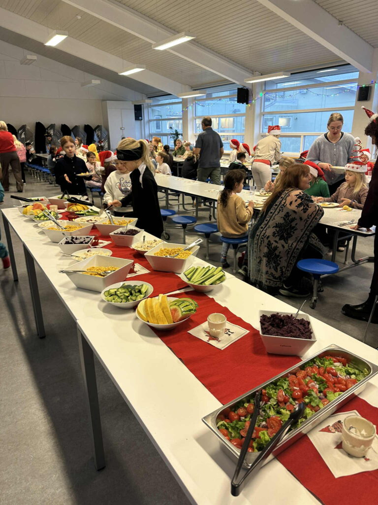 Jólamatur og kræsingar voru á boðstólum fyrir nemendur og starfsfólk skólans. Boðið var upp á kalkún með góðu meðlæti og allir fengu ís í eftirrétt.