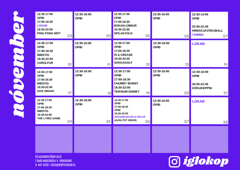 Opnunartími félagsmiðstöðvar